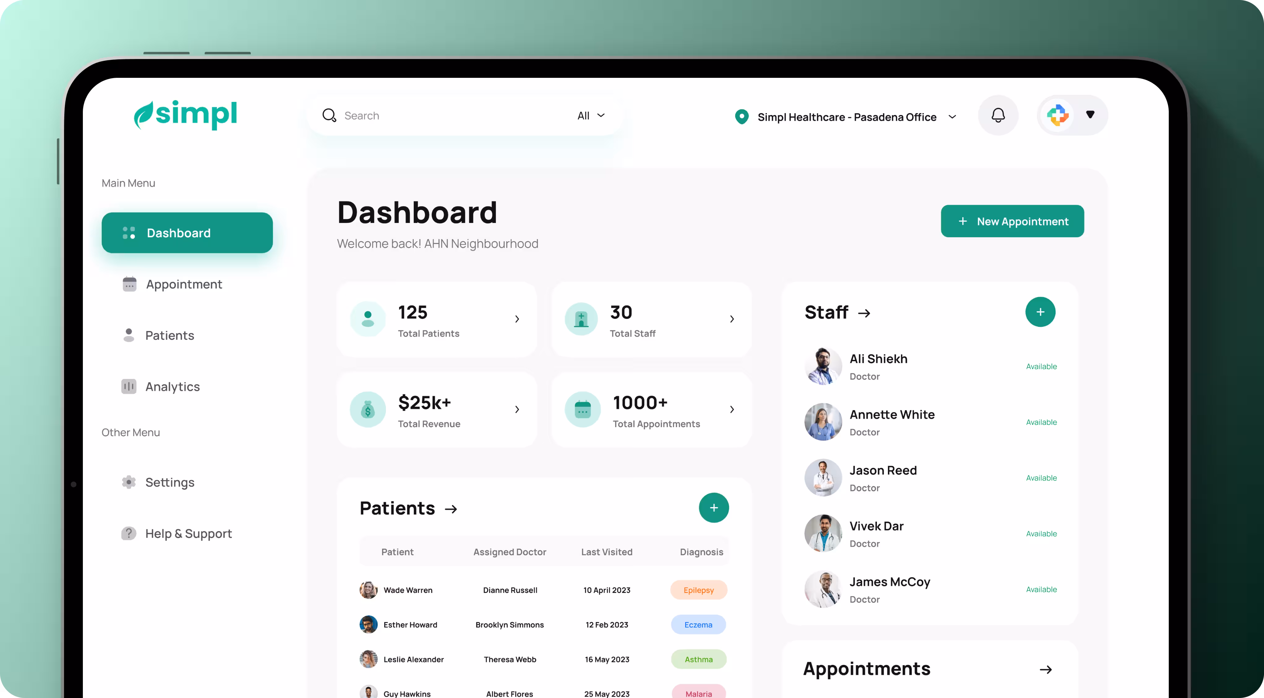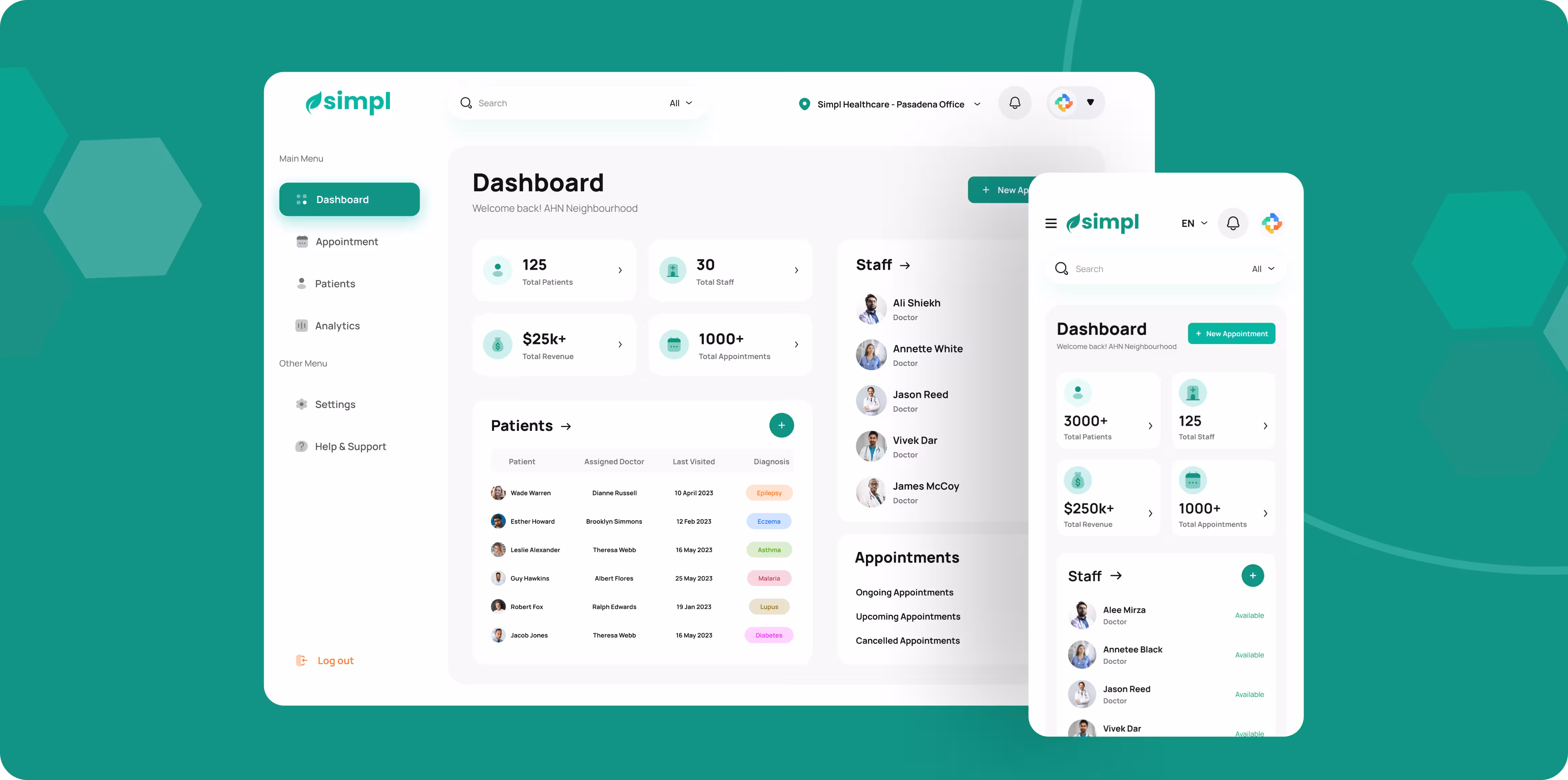 Our design process for Simpl was rooted in research, strategy, and iterative development. We treated every decision as critical, knowing that the success of the platform would depend on precision, usability, and scalability. From understanding complex clinical workflows to mapping patient and facility data, each stage of the process ensured that the final product was not only visually coherent but also optimized for real-world healthcare operations.